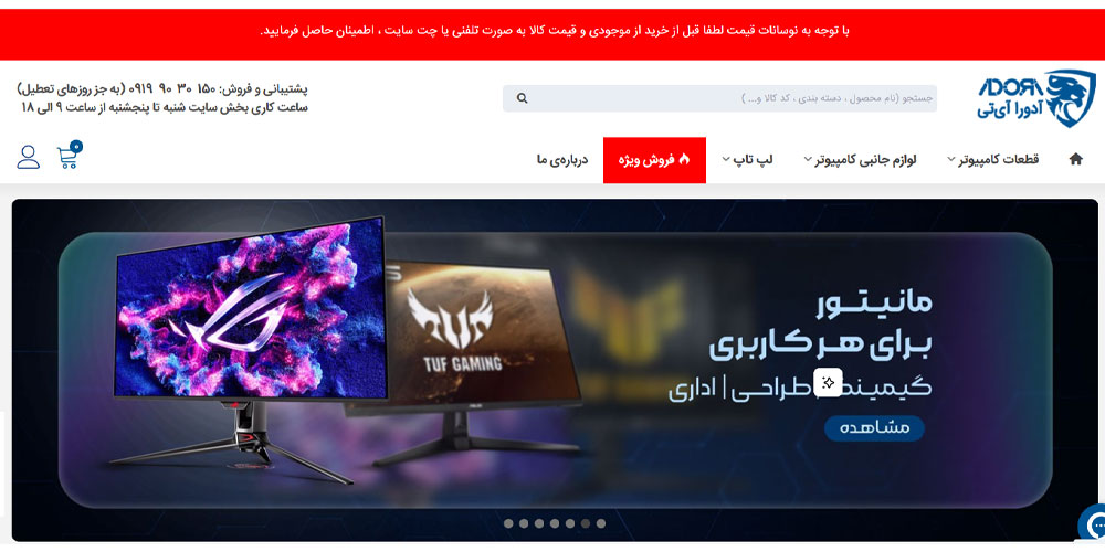 به دنبال خرید مانیتور در مشهد هستید؟ آدورا آیتی یکی از فروشگاههایی است که تجربه خرید را ساده و مطمئن میکند. این فروشگاه مجموعهای متنوع از مانیتورهای گیمینگ، اداری و حرفهای از برندهای شناختهشده را ارائه میدهد و تیم مشاوره حرفهای آن شما را در انتخاب بهترین مدل متناسب با نیازتان همراهی میکند. فرصت را از دست ندهید و بهترین مانیتور خود را از آدورا آیتی تهیه کنید!